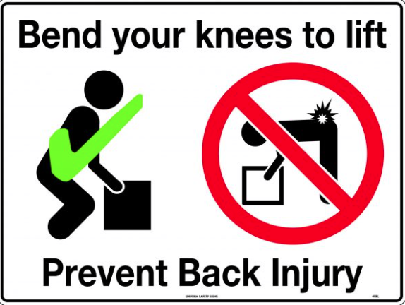 300x225mm - Metal - Bend your Knees to Lift Prevent Back Injury (419MM)