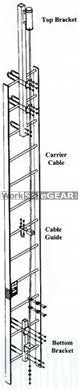 Fixed ladder safety system, bolt on, galvanised, top bracket with energy absorber, bottom bracket with cable tensioner/clamp assembly - cable, cable guides and sleeve purchased separately dependant on your systems requirements.