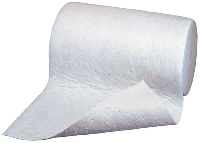 Rolls of sorbent material are used to cover and sorb large spills or in areas where spills may occur. Conveniently packaged so that they may be cut to the desired length. Designed to cover large surfaces and may be easily cut to fit tight corners. Can also be used to cover large spills or as a precaution in areas where large spills may occur.