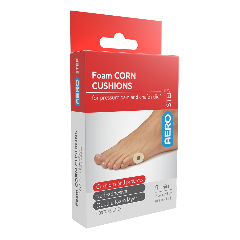 AeroStep Corn Cushions help relieve painful shoe pressure and discomfort caused by rubbing. The soft cushioning foam shape allows socks and tights to glide over the cushion.