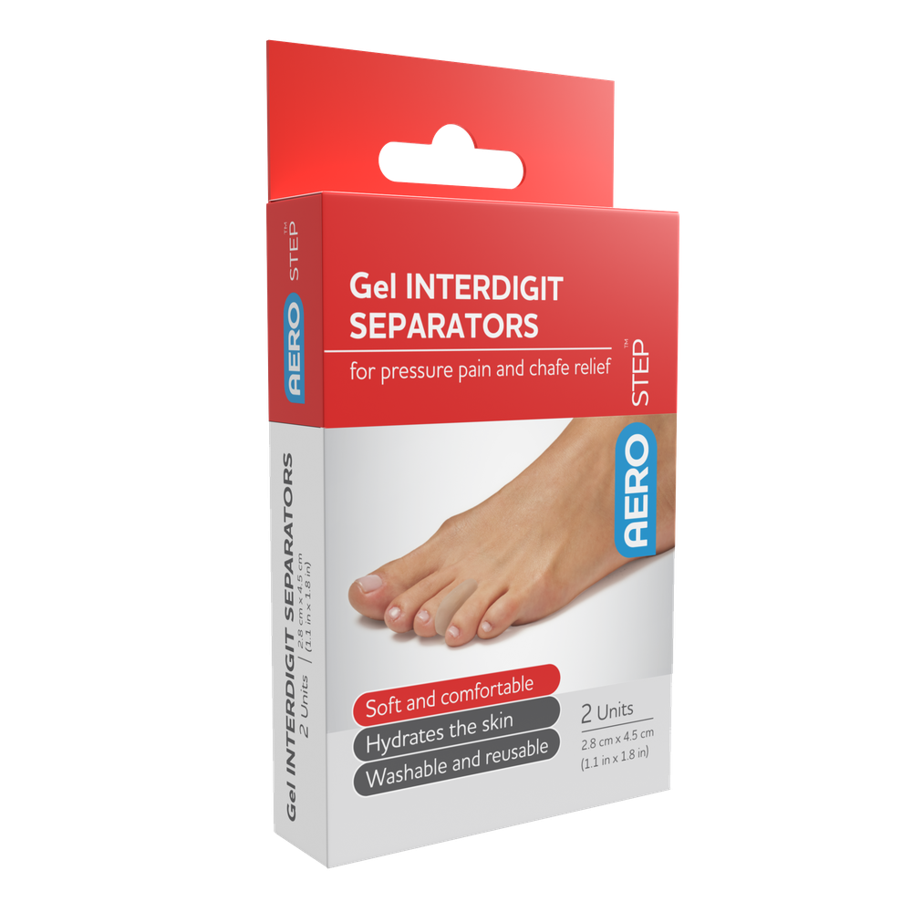 AeroStep Gel Interdigit Separator separates toes and alleviates pain caused by friction. Made of an elastic and soft moisturising gel it aids the disappearance