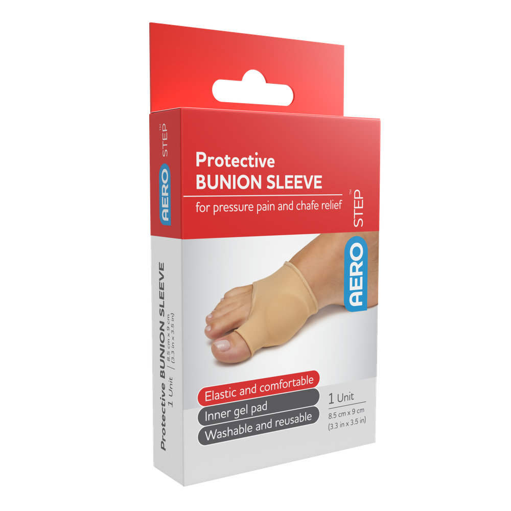 AeroStep Protective Bunion Sleeve is an elastic protective sleeve. The inner gel pad provides relief and protection in the bunion area. It's designed to fit most types of footwear.