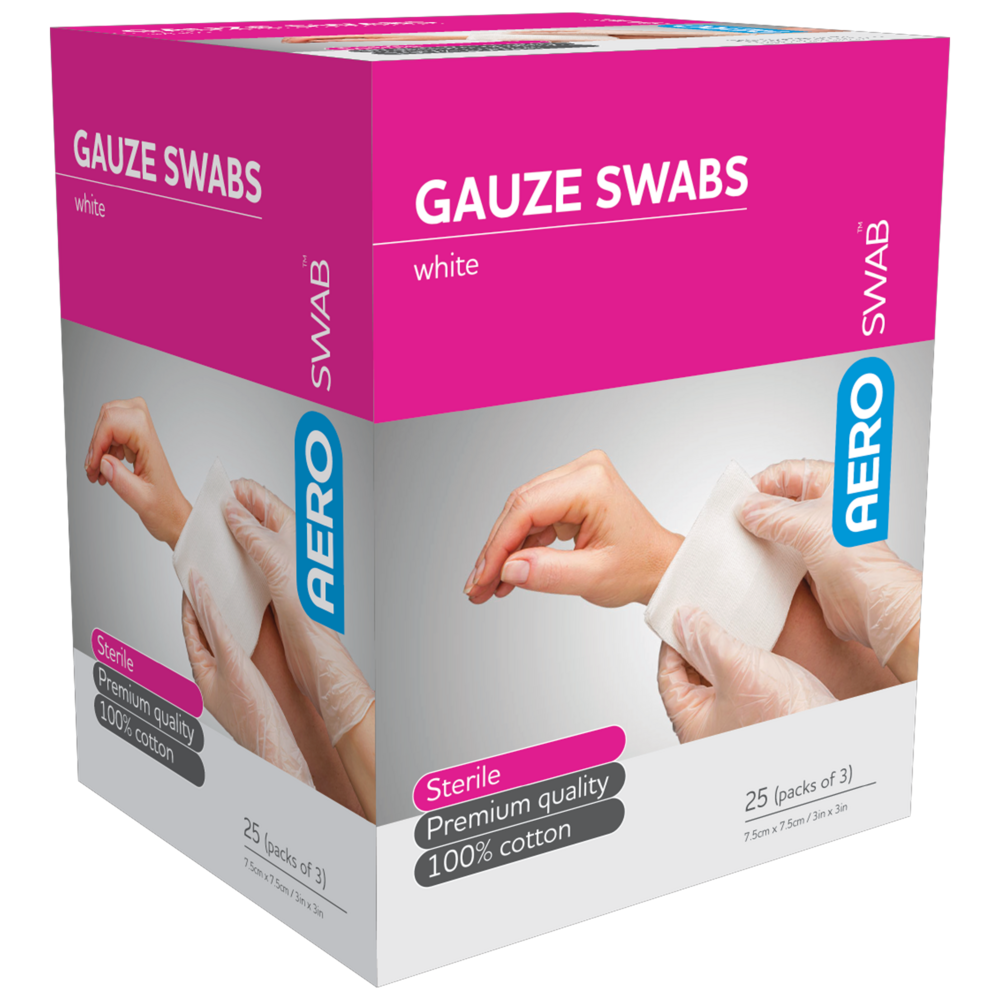 Aero Healthcare AEROSWAB Sterile White Gauze Swab 7.5 x 7.5cm (Packs of 3) Box/25