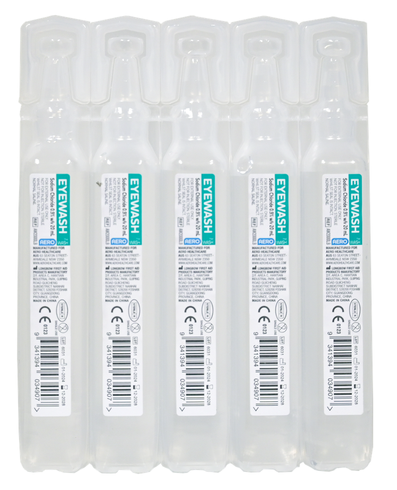 AEROWASH is available in twist off ampoules or in a tear off sachet both of which are convenient and easy to use in an emergency.
