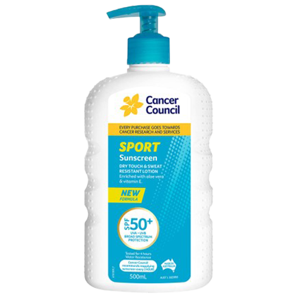 Dry-Touch and Sweat resistant lotion. 500ml pump bottle. Perfect for team use. SPF50+ and 4 hours water resistant. Sweat resistant. Enriched with aloe vera and vitamin E. Great for sports requiring grip such as tennis golf cricket and baseball. Light non-greasy and moisturising. Easy to apply and fast drying. Fragrance and paraben free. Made in Australia.
