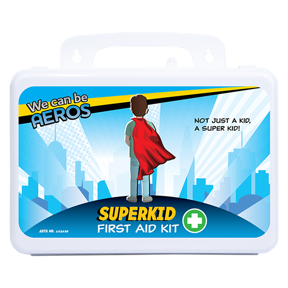 For when the invincibility powers wear off the Superkid First Aid Kit is here! All the essentials for busy little superkids on the go!
