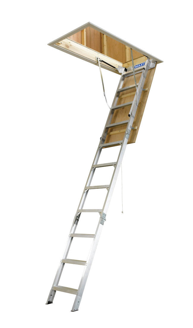 The Bailey FS13560 Aluminium Folding Attic Ladder is designed for domestic applications and fits standard ceiling heights. It is constructed from strong aluminium and offers easy, quiet opening with gas struts. The wide opening ensures convenient attic access and it's simple to install.