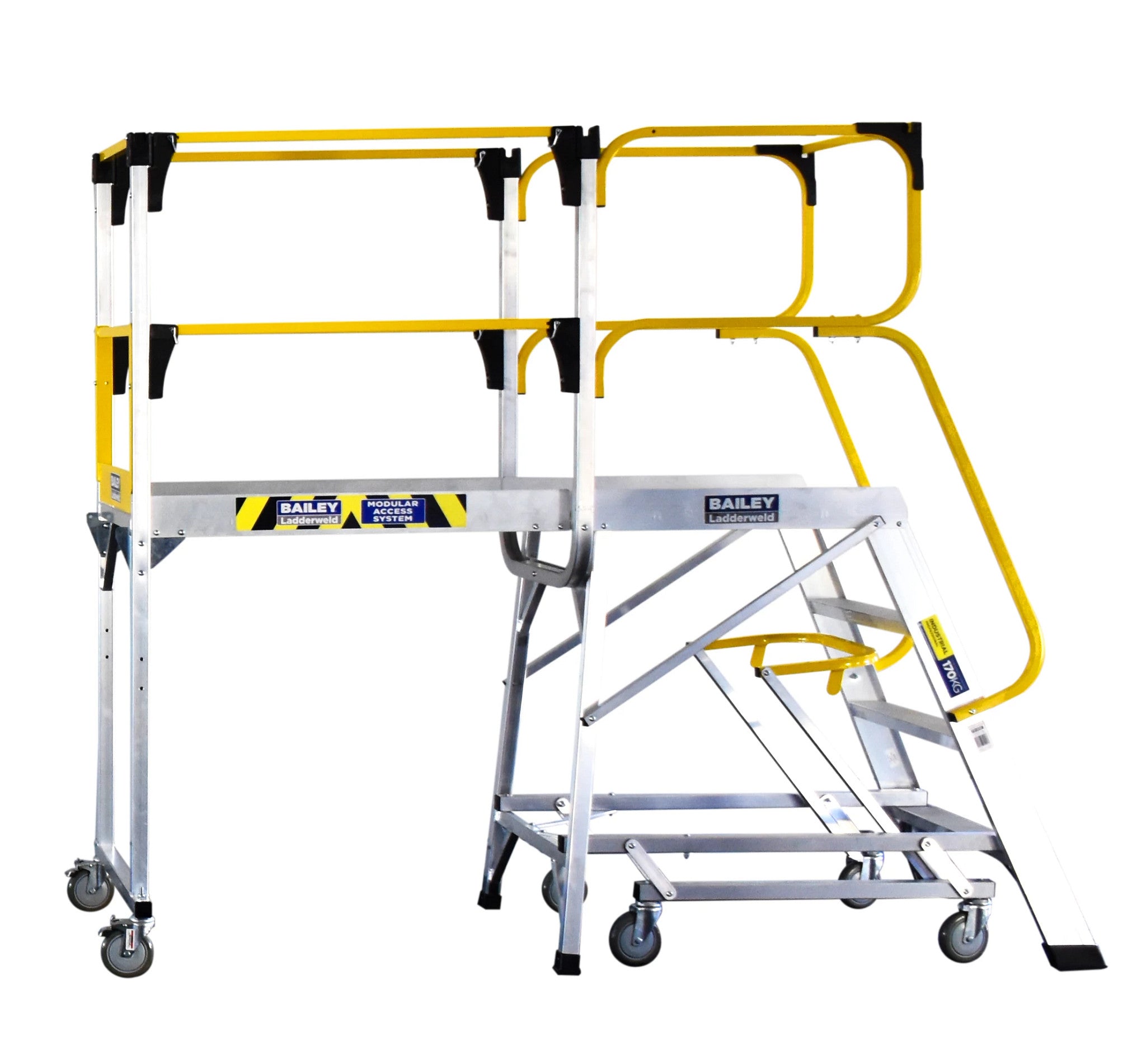 The Bailey FS13789 Modular Access System 1.0 m Platform allows the user to customize the work platform length at variable heights and shapes that suit the desired application. This system increases safety and efficiency in the work place. The off the shelf solution means there is no huge capital cost or long lead times. Specifically designed for use in the transportation industries, aviation and aircraft maintenance, manufacturing and processing industries, heavy equipment maintenance, material handling and stock picking, warehousing, defence and mining industries.