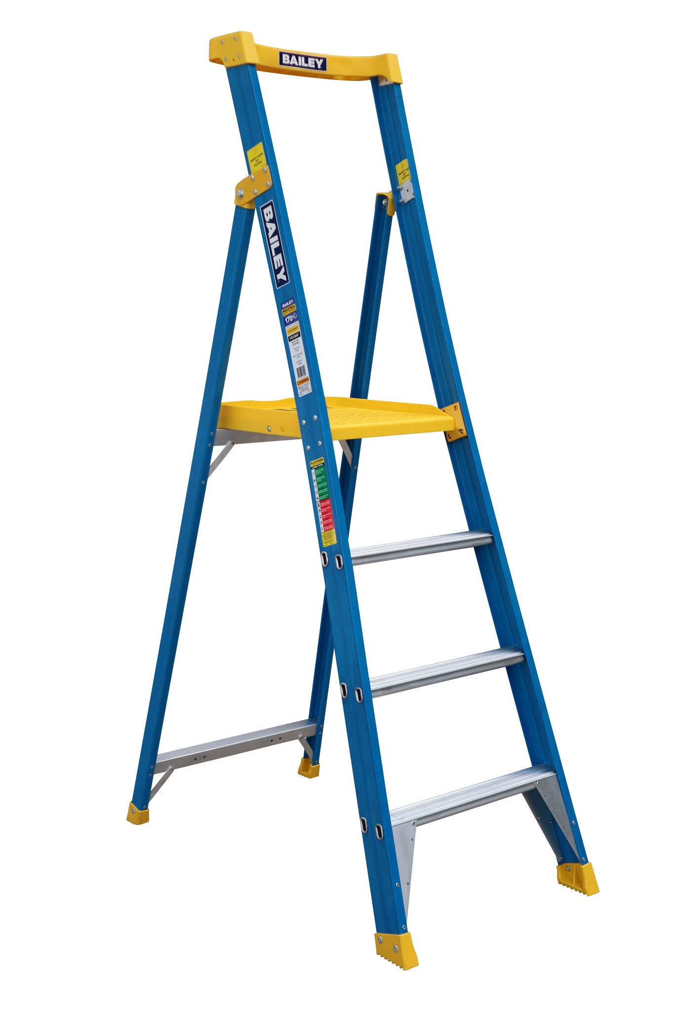 The Bailey FS13947 Pro Punchlock 4-tread platform ladder has a large and stable work platform to improve work-site safety and efficiency.