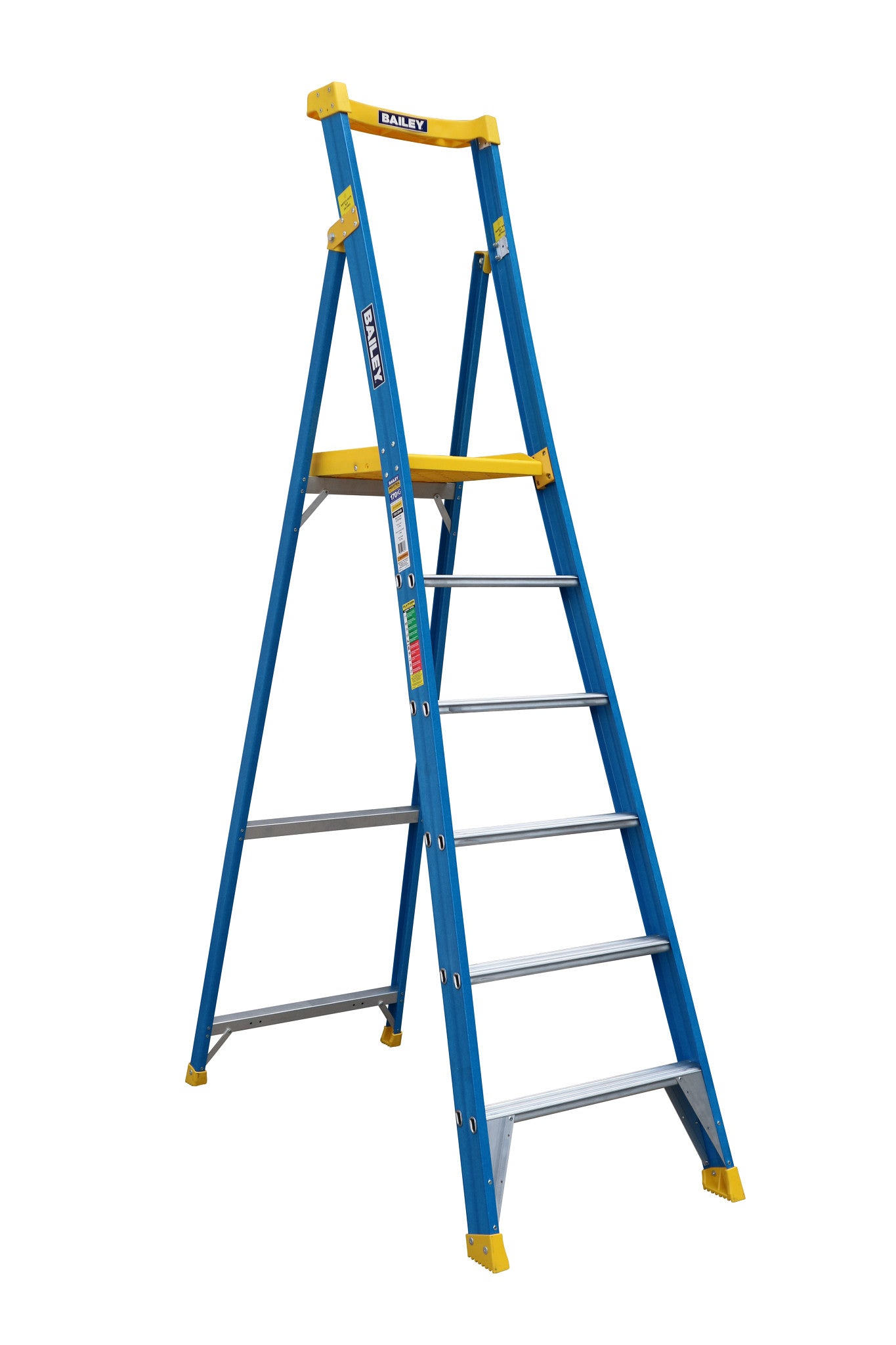 The Bailey FS13949 Pro Punchlock 6-tread platform ladder has a large and stable work platform to improve work-site safety and efficiency.