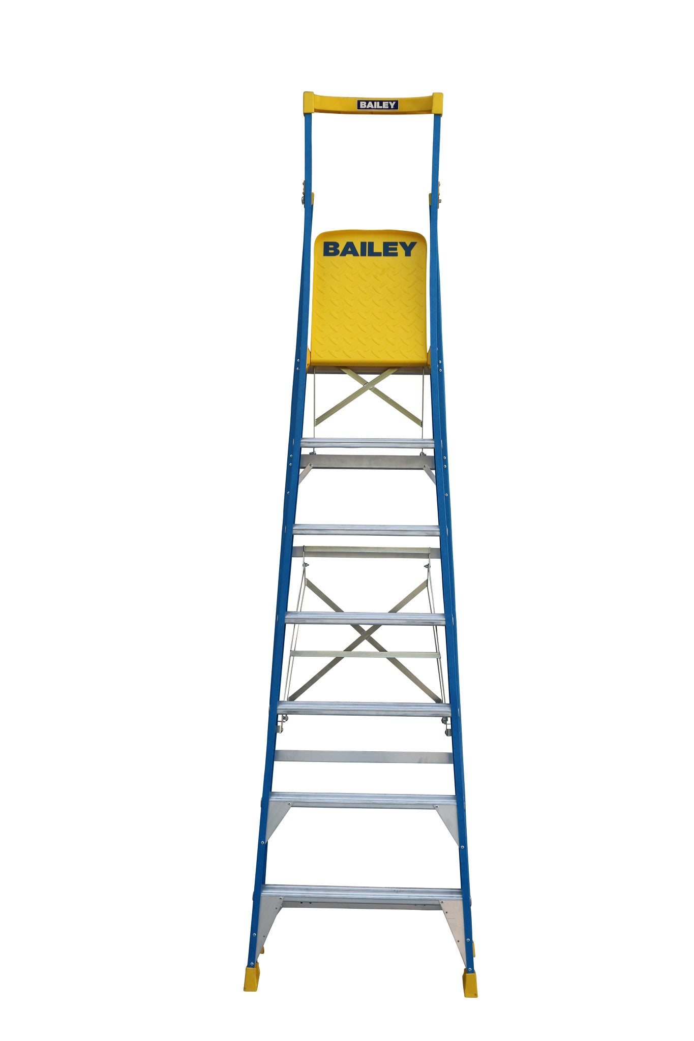 The Bailey FS13950 Pro Punchlock 7-tread platform ladder has a large and stable work platform to improve work-site safety and efficiency.