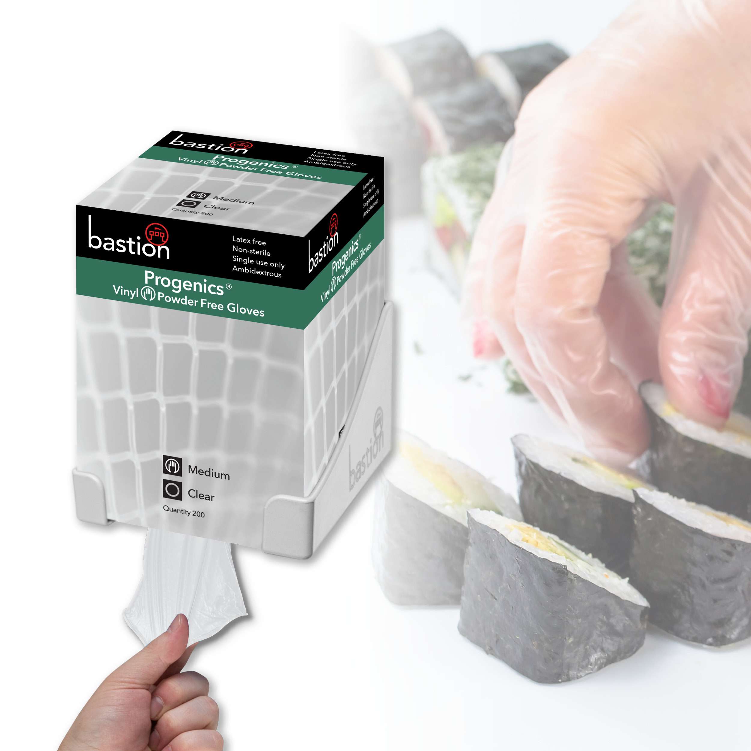 Bastion Progenics  Vinyl  Clear  Gloves  -  Powder  Free