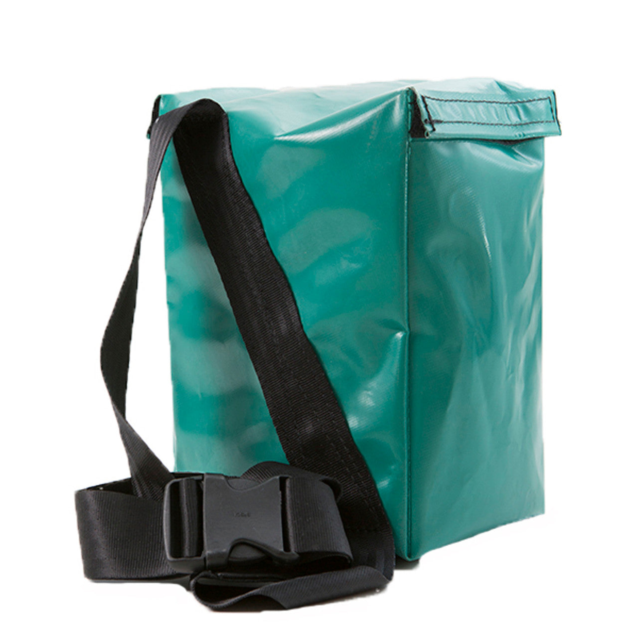 This canister bag for carrying a full breathing mask is made of heavy duty reinforced PVC vinyl with a zip up top lid and adjustable webbing straps.