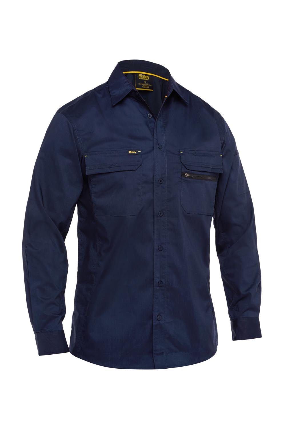 Lightweight stretch ripstop fabric with permanent wicking Bisley X Airflow ventilation at multiple heat stress areas, including laser perforated self fabric panels on side of body and underarms Two chest...
