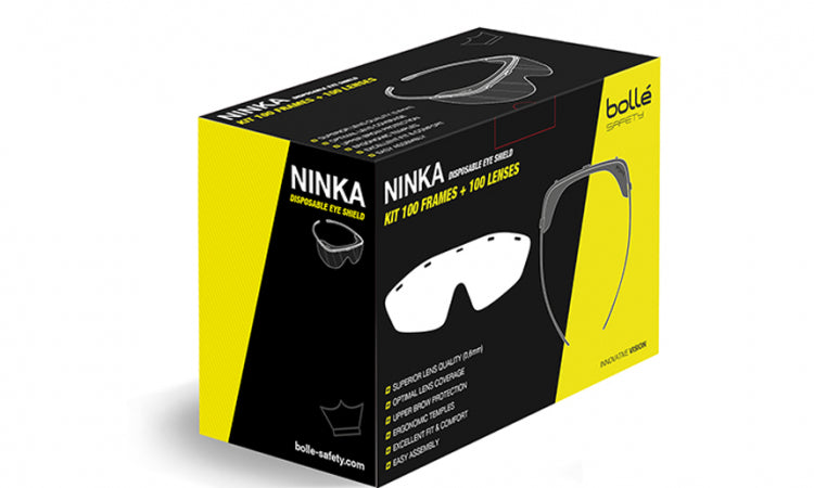 Bolle Eye Shields NINKA Large Kit Pack 100 Grey Frame + 100 Clear PET Lens (PSONINK010) Protective eye shield accessible to all Healthcare & retail sectors will appreciate its ergonomics...
