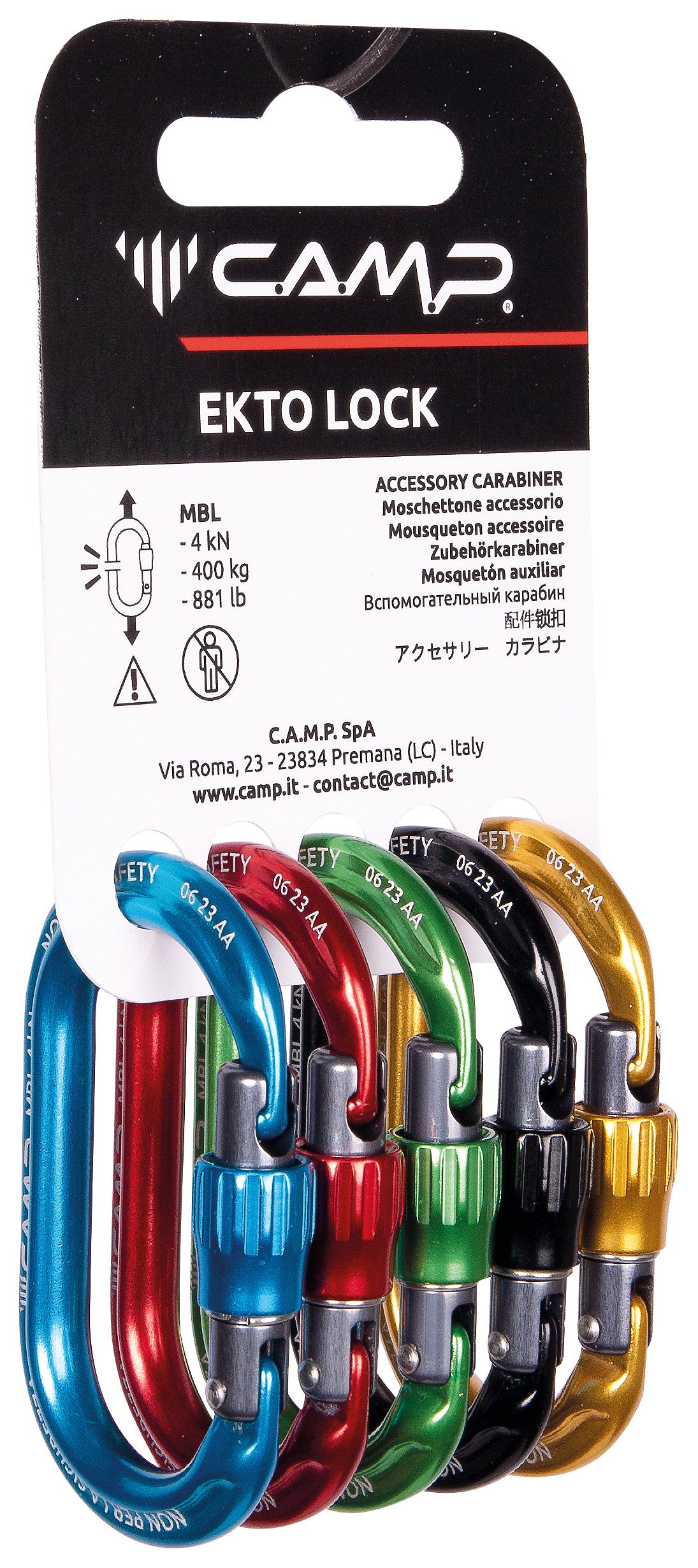 Rack pack of 5 color differentiated Ekto Lock accessory carabiners.