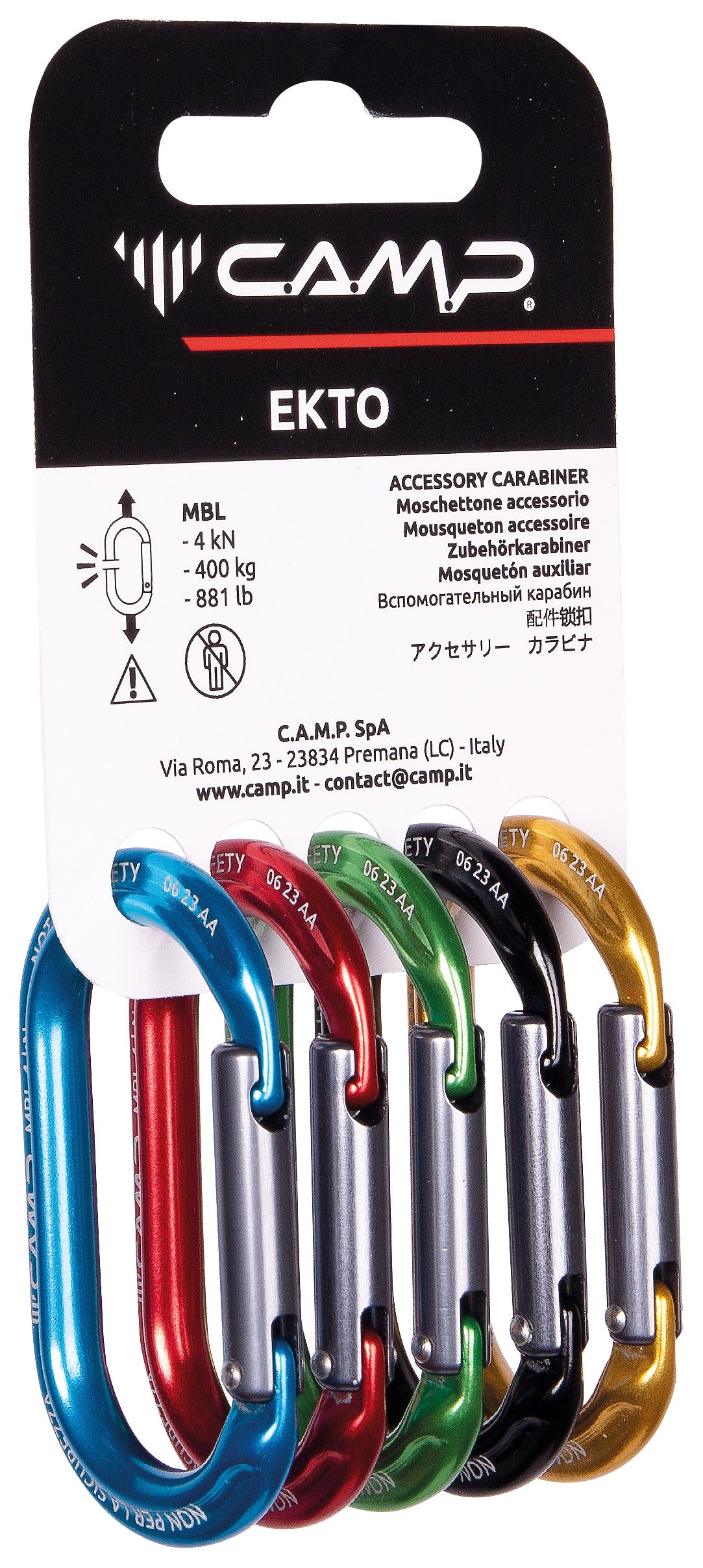 Rack pack of 5 color differentiated Ekto accessory carabiners.
