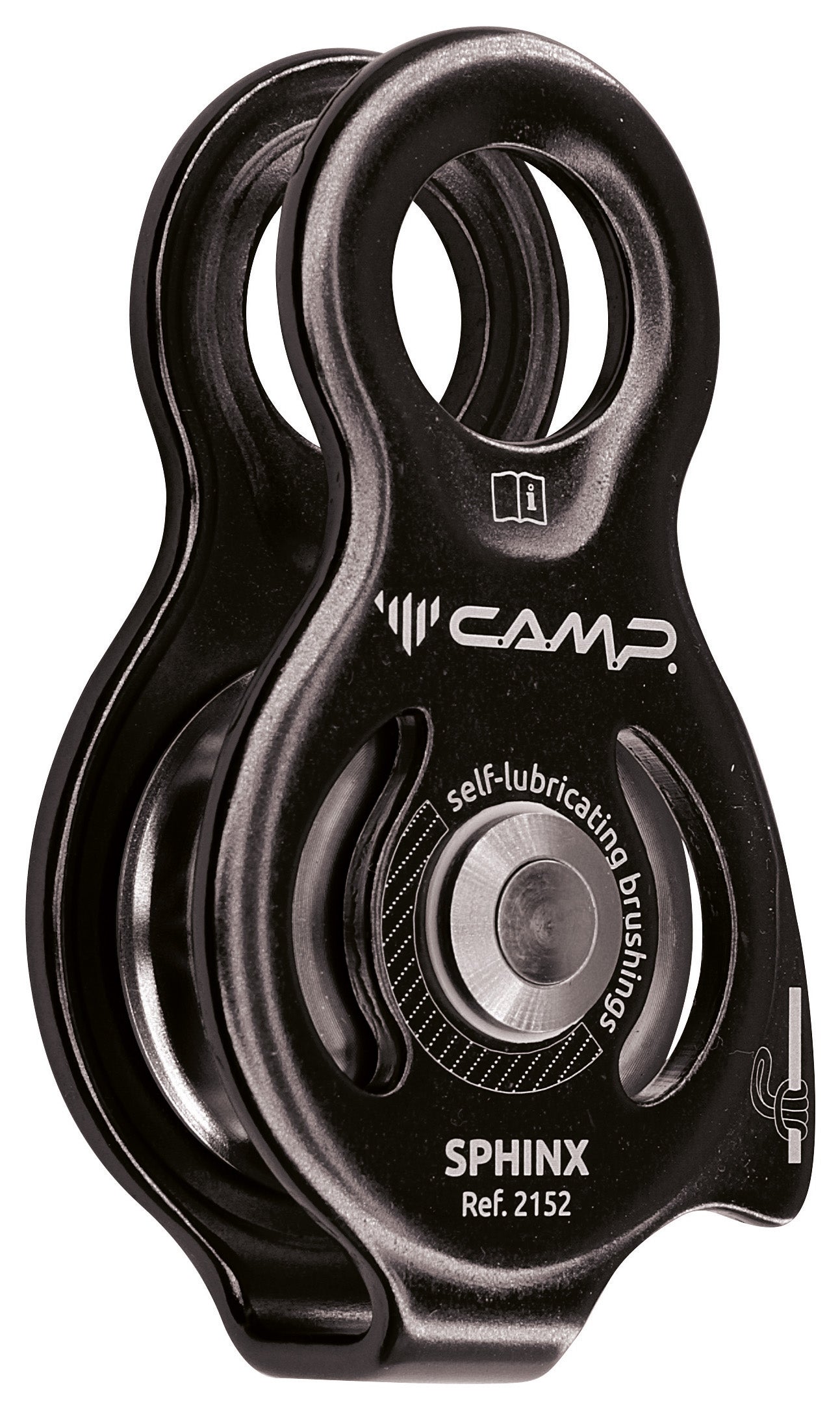An ultra slim, highly functional fixed pulley. The main attachment point allows for full rotation of the carabiner. For use with ropes up to 13 mm. Prusik minding, the self-locking knot can be installed on one side. Self-lubricated bushings are sufficient for light applications at low speed. Efficiency: 80%. Aluminum alloy body and wheel, stainless steel axle.
