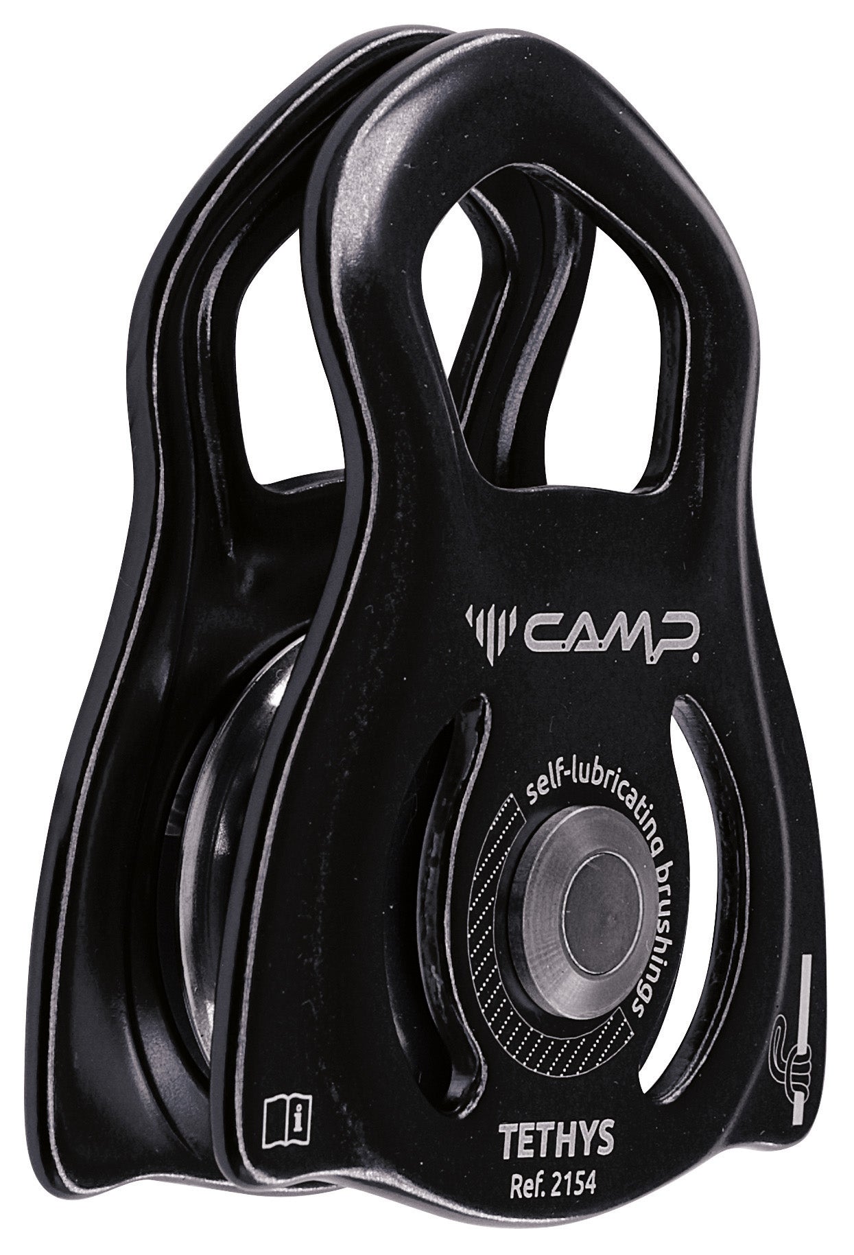 A compact and lightweight pulley with rotating flanges and a large attachment point that accommodates two carabiners. For use with ropes up to 13 mm. Prusik minding, the self-locking knot can be installed on both sides. Self-lubricated bushings are sufficient for light applications at low speed. Efficiency: 80%. Aluminum alloy body and wheel, stainless steel axle.
