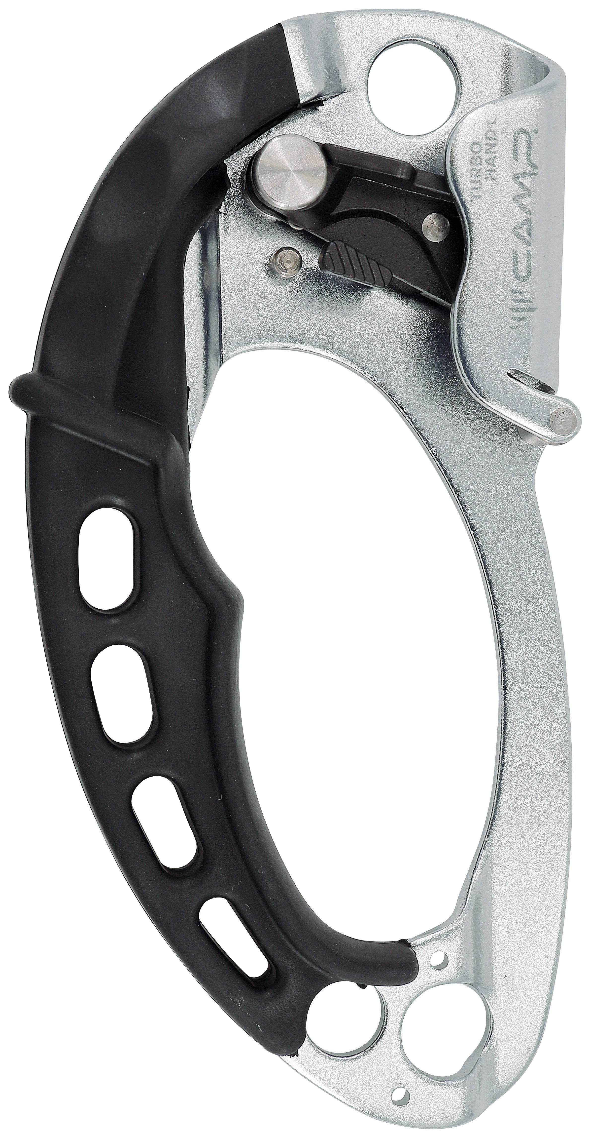 A stainless steel rope guide (Turbohand Guide, sold separately) can be attached to the bottom of the handle to align the rope for long ascents.