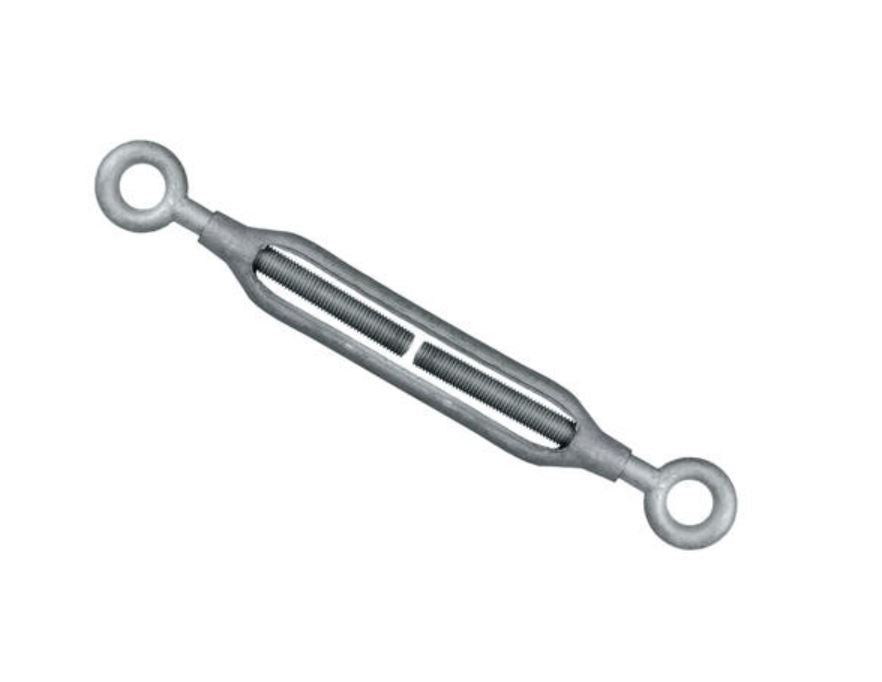 Used in conjunction with wire rope assemblies etc. for light duty tensioning applications.• Manufactured from malleable cast steel in zinc plated finish.
