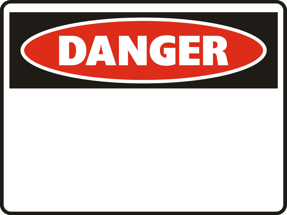 AS 1319 specifies that a Danger Sign must incorporate the word Danger in white letters on a red oval inside a black background.