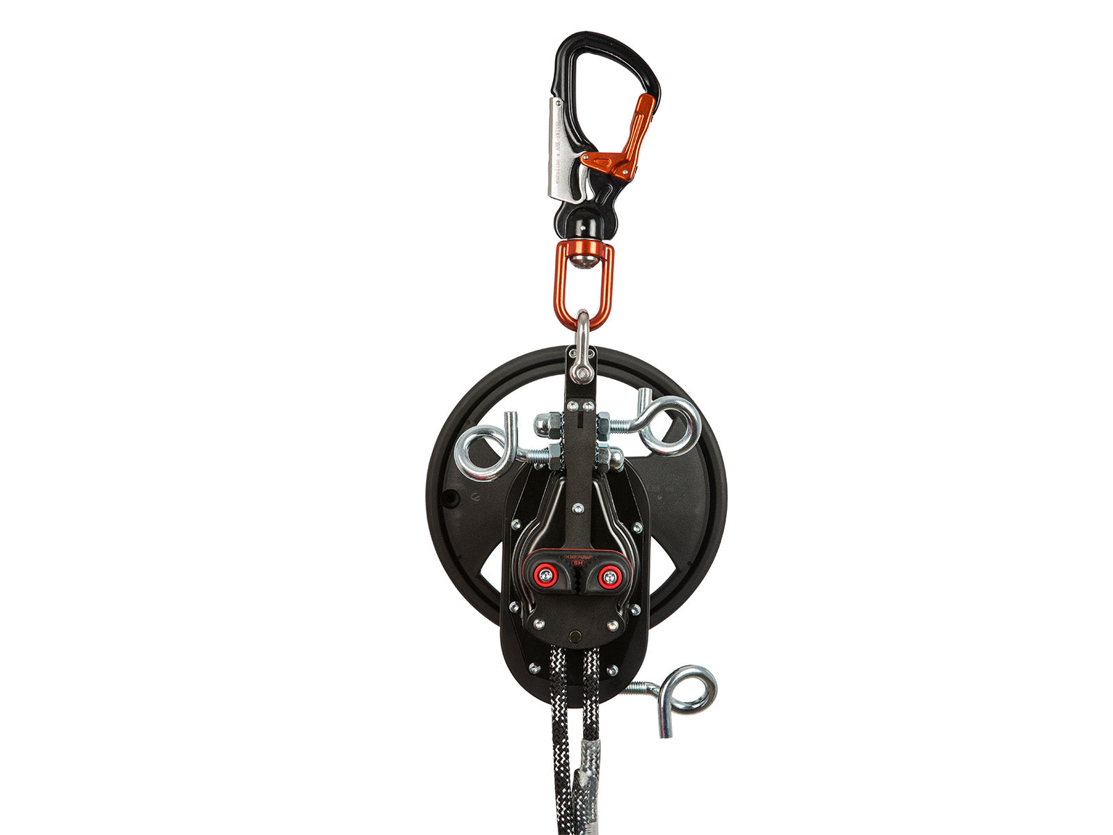 Ferno Evac Rescue Descent Kit is the easiest method of rescue on the market. The kit is packaged ready to rescue eliminating rigging set up time.Each kit contains all the gear you need to self-rescue or evacuate one to two persons from towers, wind turbines, masts, high bay lift trucks, cranes or similar.A controlled rate descent device with a hand wheel, geared recovery mechanism provides lifting capabilities for either one or two person, self-rescue evacuation. The hand wheel can be operated/turned three ways:
