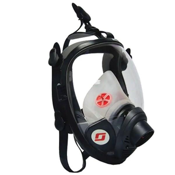 Full face respirator with silicone face piece. Unique toroidal visor offers exceptional vision. Speech diaphragm helps clear and audible speech transfer. Five point adjustable head harness provides increased wearer comfort and fit. |