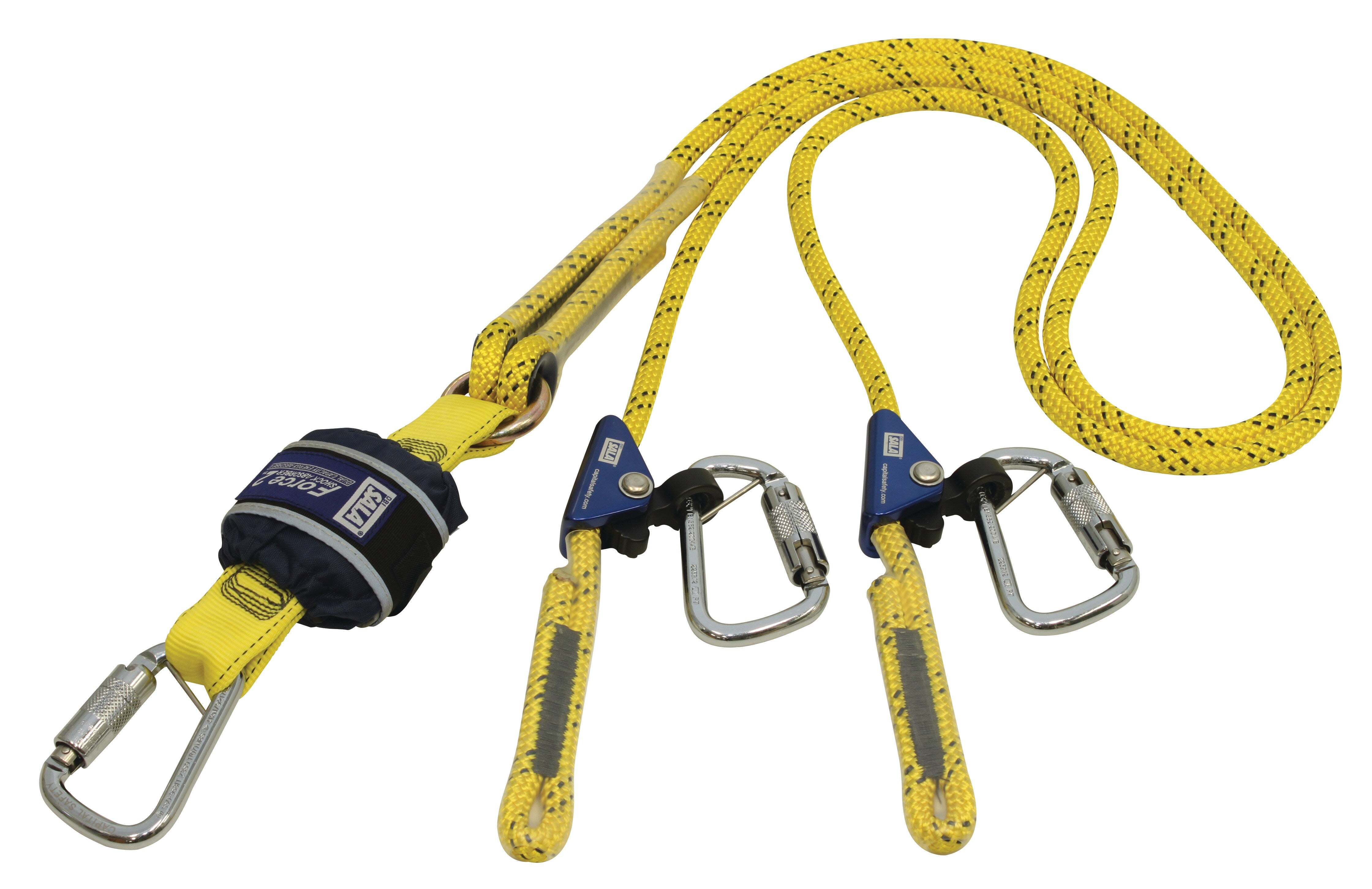 Our Force2 shock absorbing lanyards by DBI-SALA are light, strong and durable and feature an expanded range of connector combinations that provide a safe and secure means of connecting your fall protection harness to a secure anchorage point. Featuring a small and light shock absorber constructed from our exclusive Hi-10 high tenacity fibre energy management material that provides second-to-none abrasion, cut and chemical resistance and efficient shock absorption. Should a fall occur, the lanyard and its unique energy absorbing system will activate stopping the fall and reducing the forces imposed on the user to safe levels. Constructed from either REPEL Technology or Nomex/Kevlar webbing (flat or elasticated), wire cable or rope (regular or cut resistant), they are available in either single, double tail, adjustable or tie-back configurations with a combination of hooks and carabiners to suit your specific needs and applications