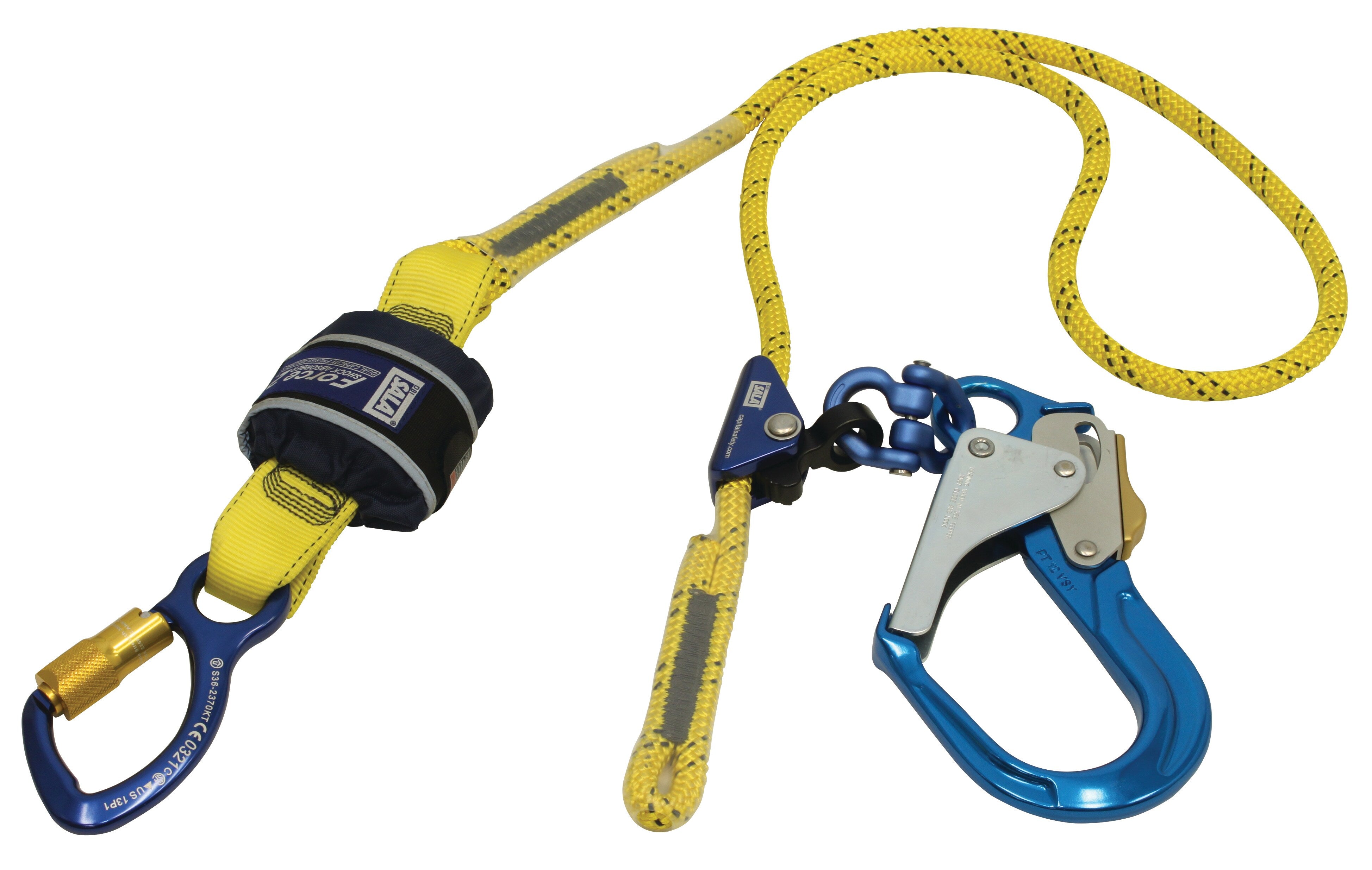 Force2 Shock Absorbing Lanyards Kernmantle Rope Single Tail Adjustable 2.0m overall length - alt3 (Z11206129R)