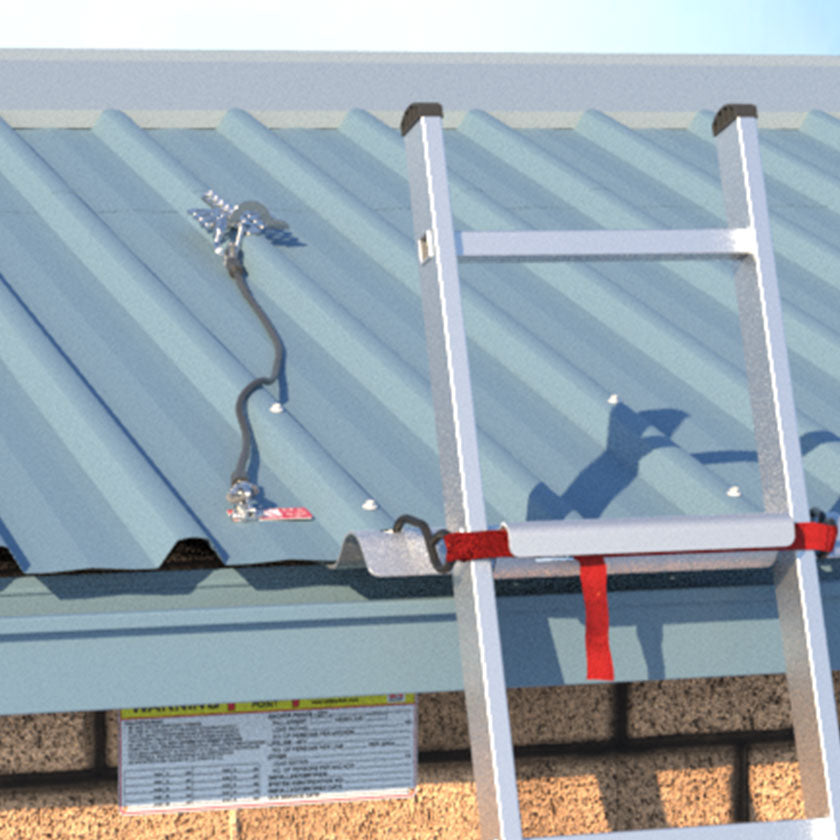 FROGLINK WITH STROP- SAFETYLINK SURFACE MOUNTED ROOF ANCHORProduct Code: FROGL001+STROP_swagedWhat am I used for? A height safety anchor point for use on metal roofs where access to timber is difficult, will arrest from any direction.
