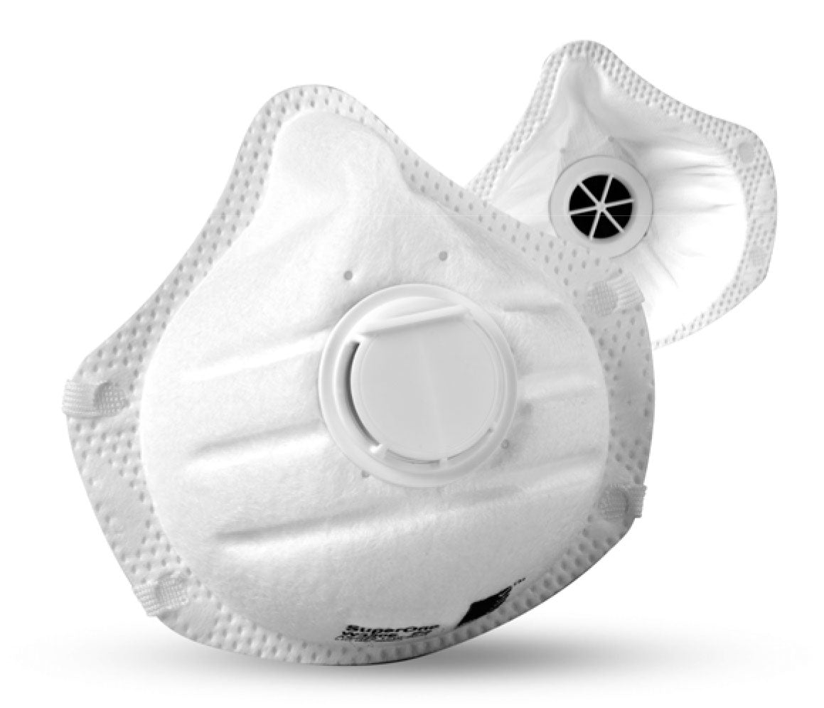 An economical cup shape respirator suggested for protection against dusts, mists and fumes/particulate aerosols free of oil.