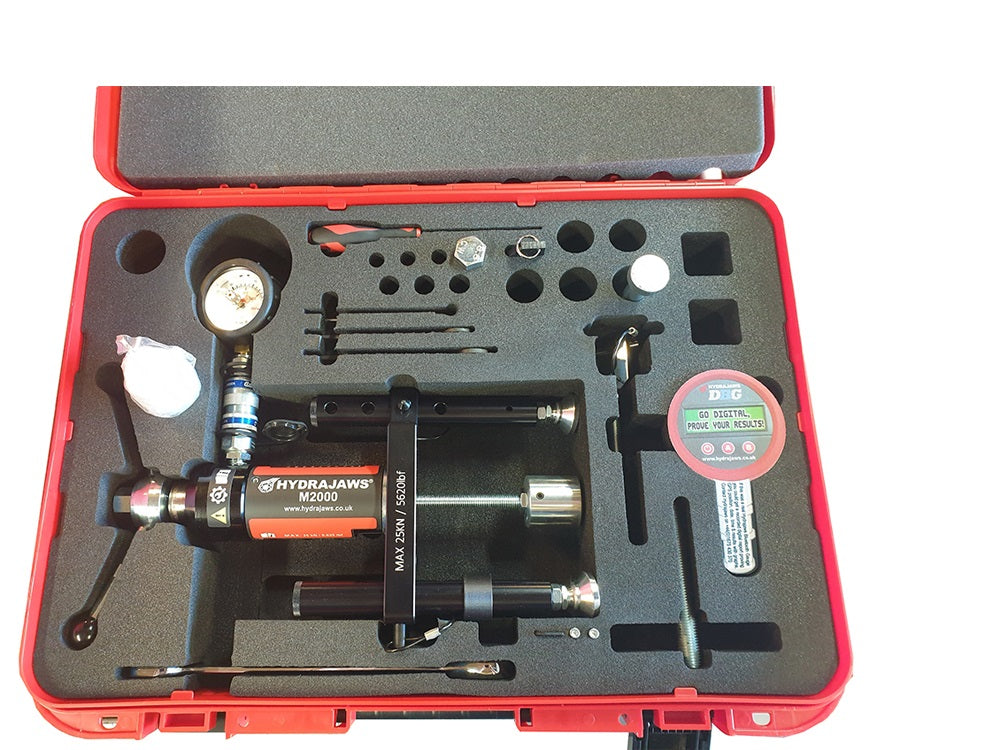 The Hydrajaws M2000 Scaffold Tie Tester Kit is a specific kit allowing Scaffolders to test all common scaffold anchors and fixings in general use today in line with NASC Guidance Notes TG4:25. Manufactured to exacting high standards, the kit contains adaptors to test the most commonly used anchors used for scaffold ties up to a maximum tensile load of 25kN (5620lbf).
