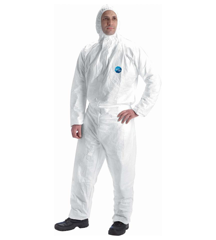 LARGE Dupont Tyvek Dual Hooded Coverall WHITE Type5/6 (CYD025:OS)