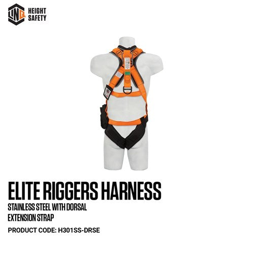 LINQ Elite Riggers Harness Stainless Steel With Dorsal Extension Strap - cw Harness Bag (NBHAR)