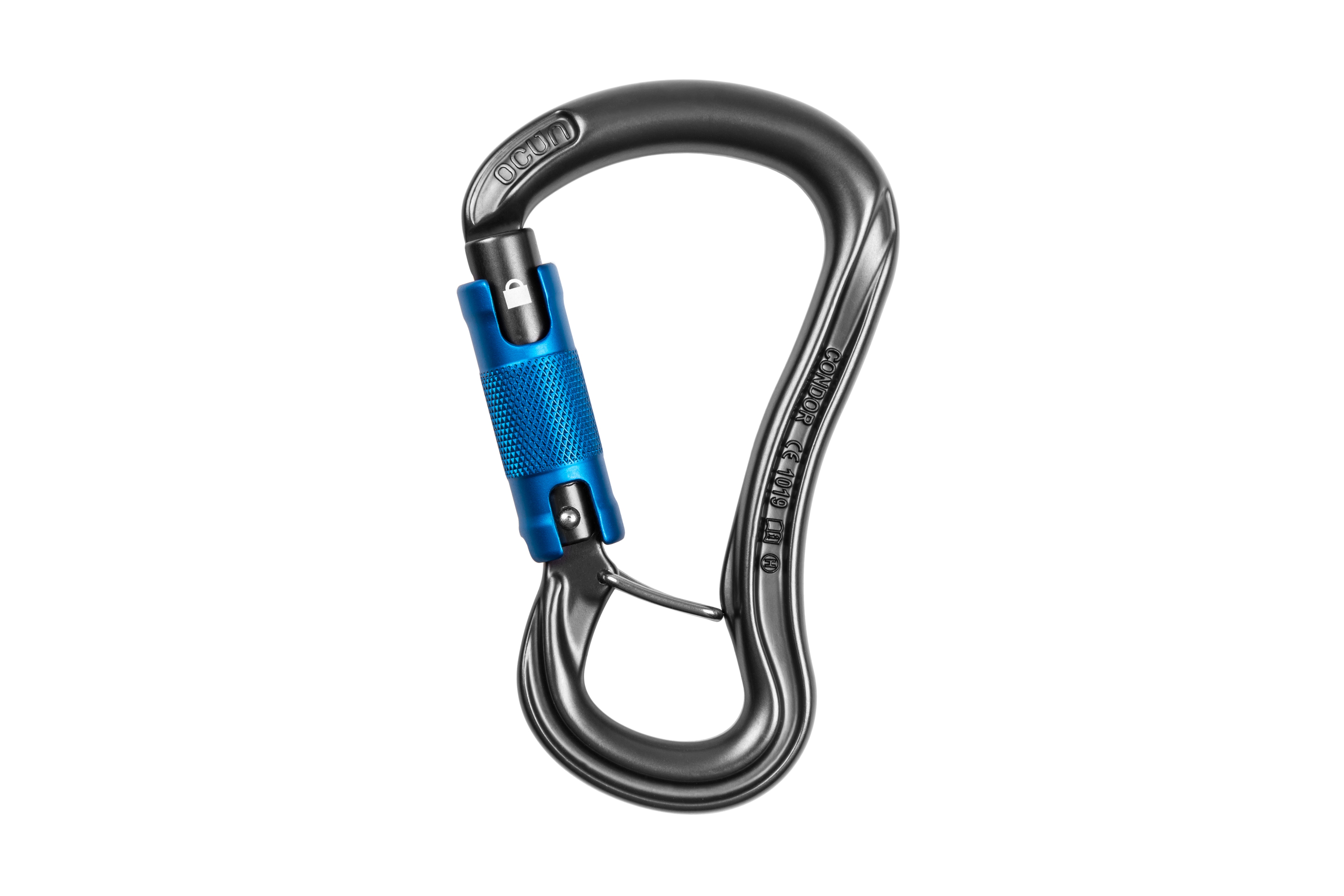 Ergonomically shaped HMS carabiner with an independent internal wire gate for safe belaying and rappelling, triple-lock
