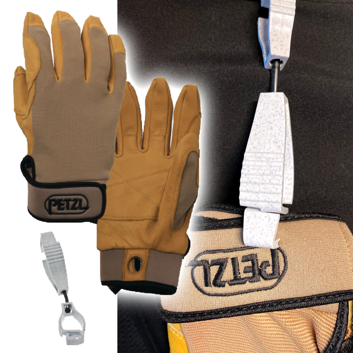 Petzl Cordex Gloves Large TAN with Glove Clip