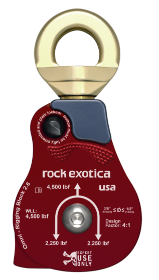 The Omni-Block combines a swivel and pulley into one tool, and incorporates a unique sideplate that opens while the pulley is still attached to the anchor. Traditionally, a pulley is connected to a swivel by a carabiner. However, the Omni eliminates the need for the carabiner, reducing length and pieces of equipment in the rigging system. The short length of the Omni is important when used in high-angle, confined space or other space-sensitive rigging environments. The reduced weight of the Omni will make hauling your gear easier. Additionally the Omni sideplate can be opened without detaching from the carabiner. Traditional pulleys require removing from the carabiner to change the rope. With the Omni, the user is able to do this while the pulley is still secured.