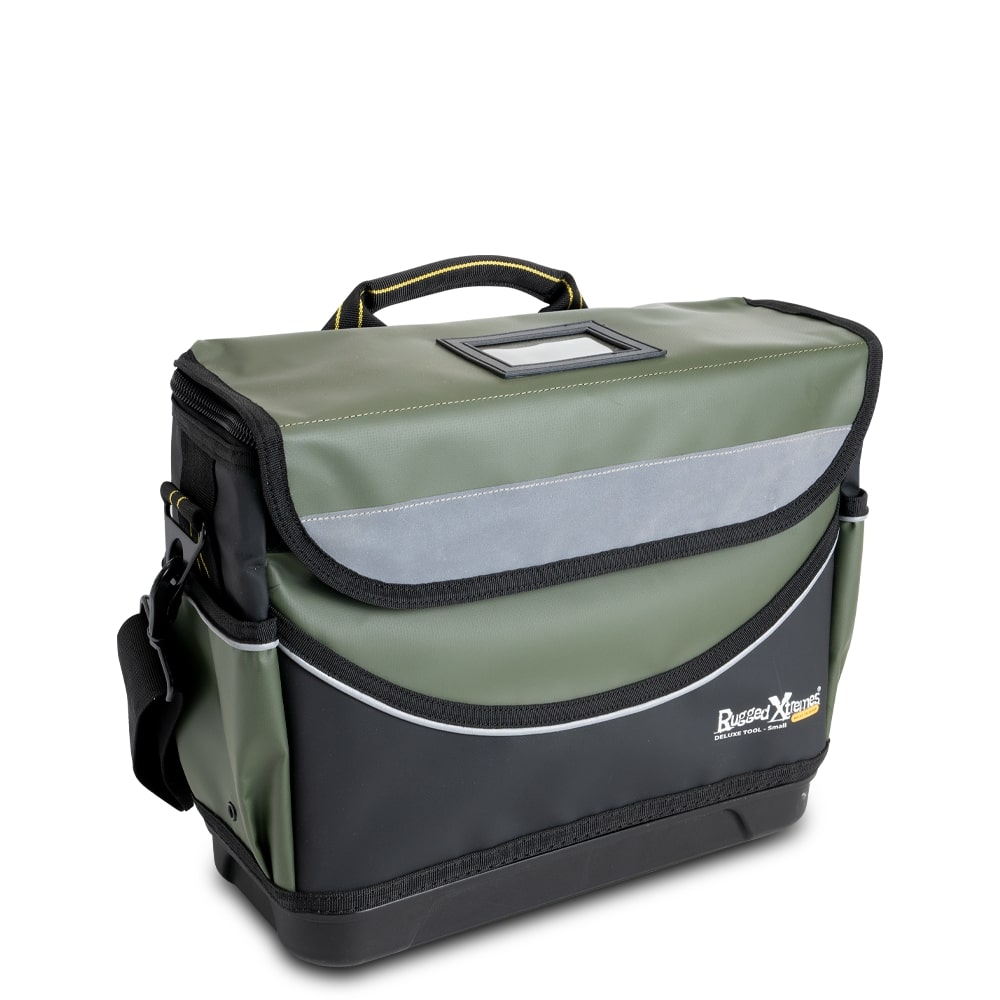 Overview Introducing the Rugged Xtremes Deluxe PVC Tool Bag: a durable solution designed to meet the demands of professionals in harsh work environments. This heavy-duty tool bag combines resilience with practical design, ensuring your tools are protected, organised, and easily accessible. Ideal for miners, electricians, and construction workers, it offers unmatched durability and convenience. Engineered for Durability and Convenience The Deluxe Tool Bag is crafted to withstand the rigors of extreme conditions, ensuring your essential tools are always within reach. This tool bag is not just about carrying tools; it's about providing peace of mind with its robust construction and thoughtful features. Key features include: Heavy-Duty PVC Construction: Made with high-quality, UV-stabilized PVC, this tool bag resists wear, tear, and exposure to harsh weather, protecting your tools from the elements. Reinforced Base and Ends: Enhanced with a reinforced base and rubberized ends, it offers extra durability and stability, preventing damage from rough surfaces. Multiple Storage Options: Equipped with a spacious main compartment and multiple external and internal pockets, it allows for optimal organisation of tools and accessories. Comfortable Carry System: Features a heavy-duty, padded shoulder strap and reinforced handles, designed for comfort and ease of transport, even when fully loaded. Adaptability for Every Professional Need The Rugged Xtremes Deluxe PVC Tool Bag is versatile enough to support professionals across various industries. Its design ensures efficiency and reliability, whether on a construction site, in a mine, or during field service operations. Versatile Storage Capacity: Large enough to carry a wide range of tools and equipment, yet designed for ease of mobility. Weather-Resistant Design: Keeps contents dry and secure in any weather conditions, making it suitable for outdoor use. Organisational Efficiency: With its various compartments, finding the right tool at the right time becomes effortless, increasing productivity on the job. Specifications and Certifications Material: Durable, waterproof 1000d, 650gsm laminated PVC Base: Hard moulded Polypropylene Edging: Polyester with high visibility reflective piping Zippers: Lockable #10 zippers with large webbing pullers Accessibility: Large easy access panels for embroidery Identification: ID pocket with address card Shoulder Strap: 50mm adjustable with quick release metal clips Closure: #10 Zipper with 50mm Velcro flap Visibility: High visibility reflective strip on front flap Shape Support: Internal flat steel stiffening rails; Hard PP end inserts Internal Storage: Zippered internal front pocket for paperwork & job sheets External Storage: Clip point connection for tape measure; Handy tape roll holder Compatibility: POD Connect with 2 x internal short rails and 1 x external long rail Padding: Removable, thick air-mesh padding Shoulder Pad: Anti-slip with POD Connect clip A Rugged Companion for Every Professional The Rugged Xtremes Deluxe PVC Tool Bag is more than just a tool carrier; it's an indispensable partner for professionals who demand reliability, organisation, and durability from their gear. Its thoughtful design and robust construction make it the go-to choice for those who work in challenging environments and require their tools to be as resilient as they are.