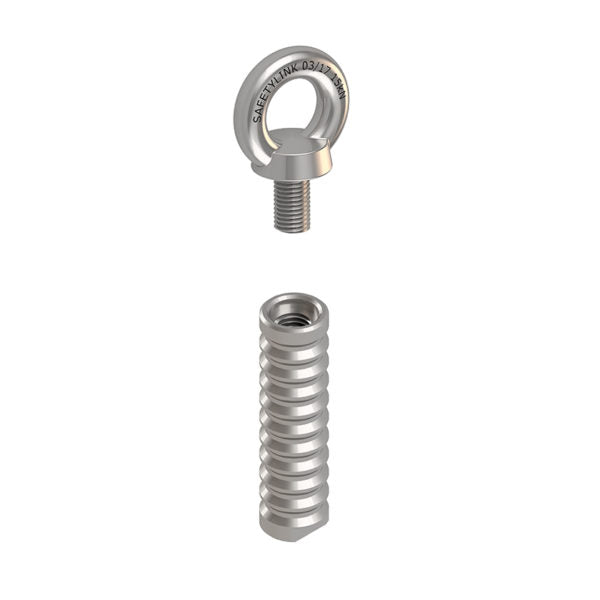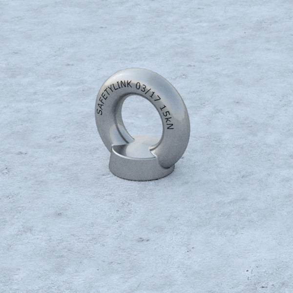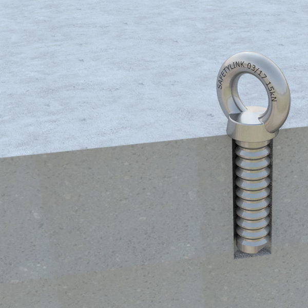 An anchor point designed for use in concrete, where the eyebolt will remain exposed for attachment.