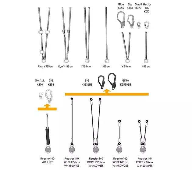 Singing Rock REACTOR 140 / W44* (Ref: W44*) Shock absorber with various types of webbing I or Y lanyards. Designed for users with a maximum weight of 140 kg (including...