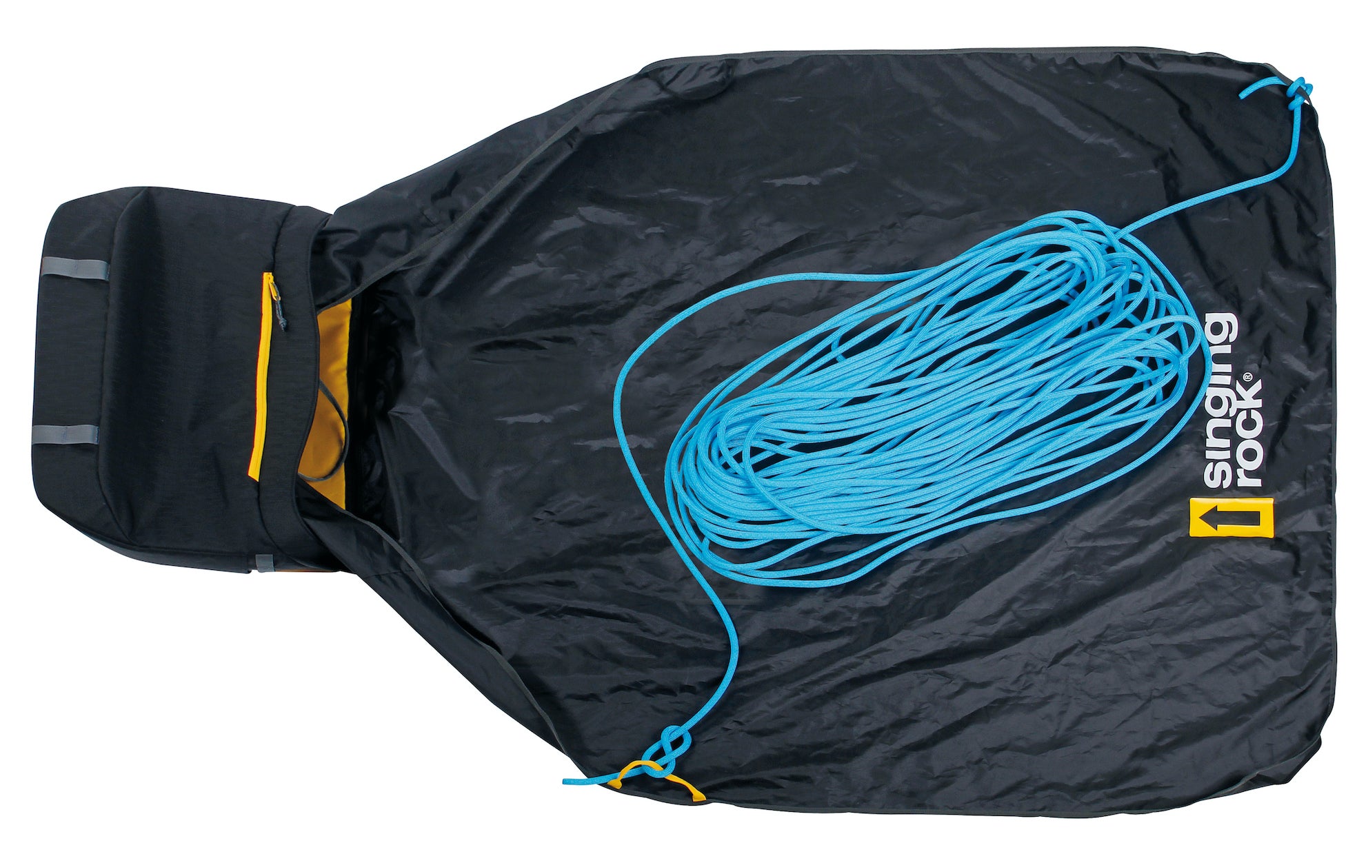 Urban style shoulder bag with a removable rope tarp for gym climbing or bouldering.