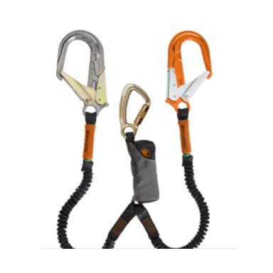 SKYSAFE PRO - 22mm gate steel t/action karabiner & 65mm gate Alloy & steel scaffold hook. TWIN Leg elasticised 28mm SHARP EDGE rated webbing (FIXED LENGTH 1.8mt) - AS/NZS 1891.1...