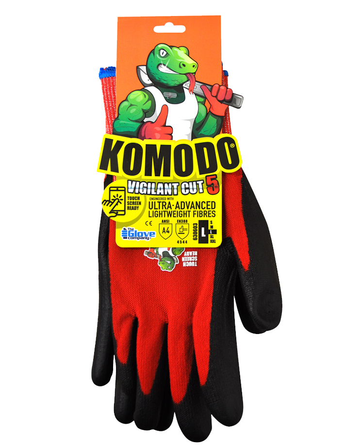 The Strongest Indestructible KOMODO Glove! KOMODO Vigilant Cut 5 Glove is the glove you need for high risk activities, such as Heavy Metal Stamping, Plate Glass Handling, Meat and Poultry Industry, Pulp and Paper Applications.